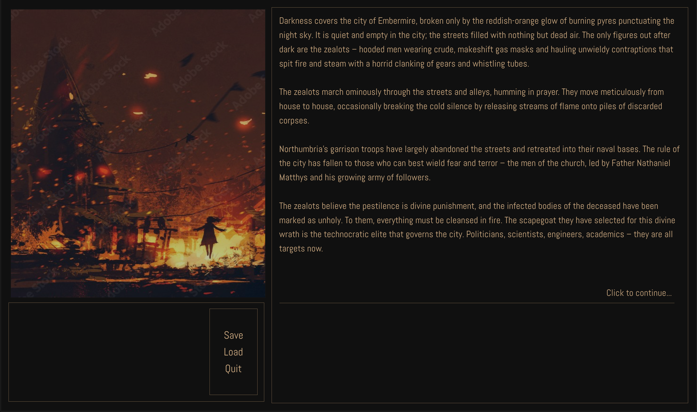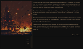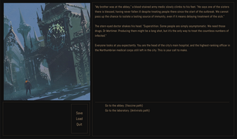The player controls Dr John Mortimer, an intelligent yet war-weary medical doctor who arrives in Embermire to assist with managing the outbreak. A former surgeon in the Northumbrian army, Mortimer learned to treat wounded soldiers using cutting-edge medical technology that has led to the development of new techniques for treating the seriously ill. Mortimer believes he can use his knowledge and expertise to develop a way to eradicate the disease.